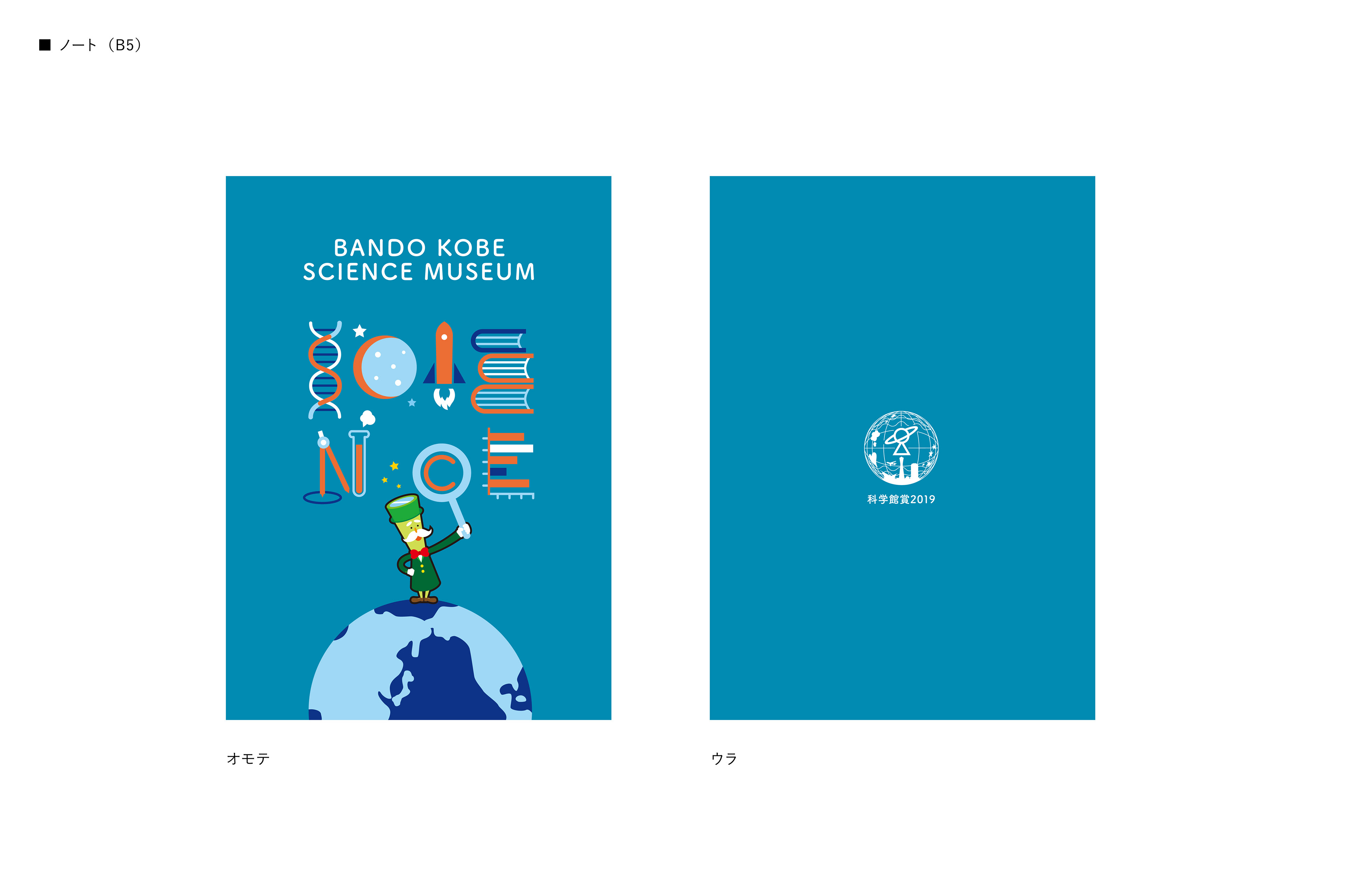 神戸青少年科学館で行われる催しの「科学館賞」受賞者に贈呈されるノートをデザイン。科学のモチーフで作った「SCIENCE」を科学館のマスコットキャラであるシルミールさんが覗いているイメージ。全体的に落ち着いたカラーで仕上げ、幅広い年齢の子どもたちや、大人でも使えるようなデザインを意識した。